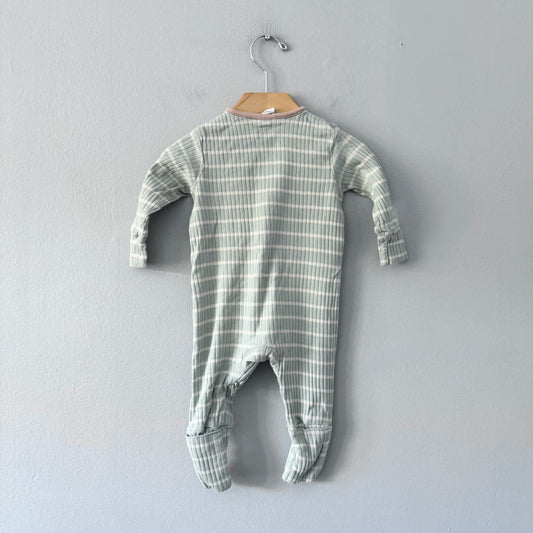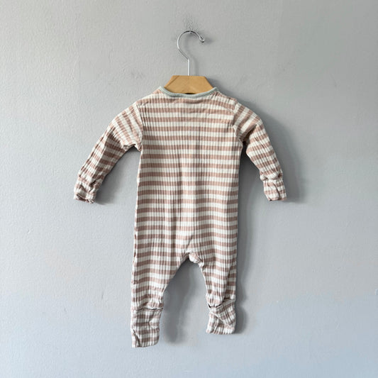 John Lewis / Olive stripe romper / 3-6M
