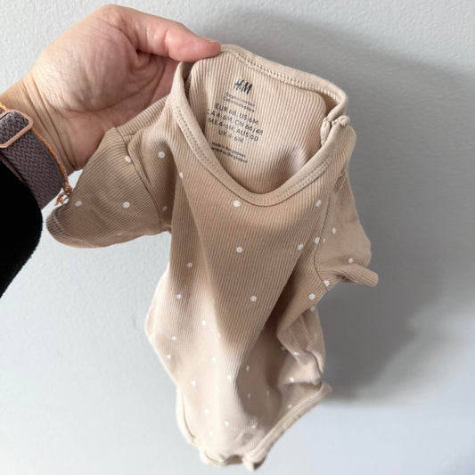 H&M / Beige dots onesie & leggings set / 4-6M