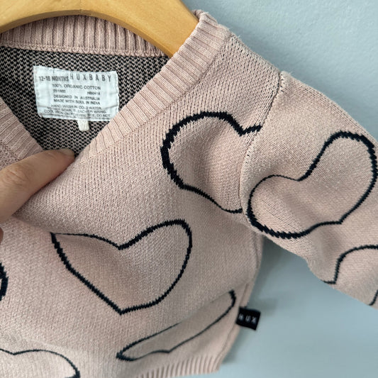 Hux Baby / Smokey pink x hear knit pullover / 12-18M