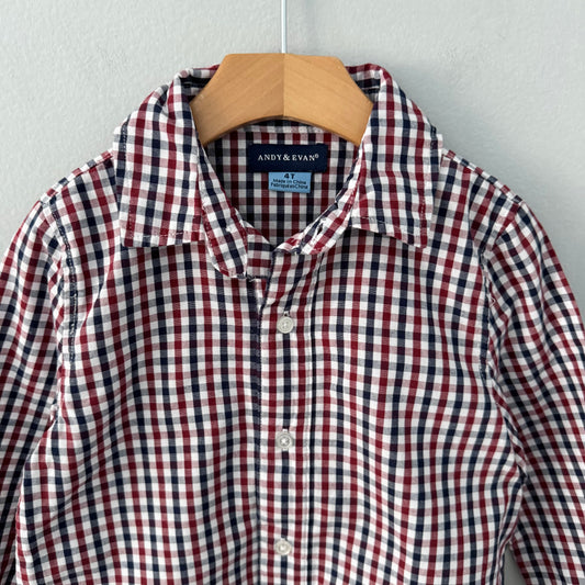Andy & Evan / Red navy white gingham check shirt / 4T