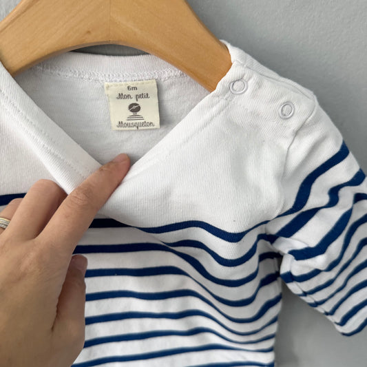 Mon Petit / White x blue striped boat neck / 6M