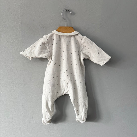 Petit Bateau / White x star long sleeve onesie / 12M