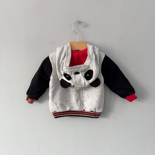 Catmini / Lined cotton knit zip up jacket - Panda / 9M