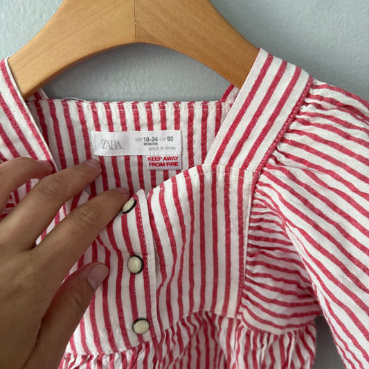 Zara / Red x white stripe dress / 18-24M