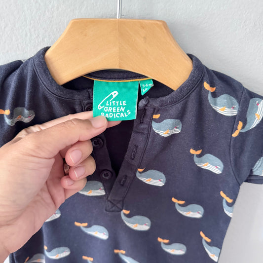 Little Green Radicals / Whale short sleeve romper / 3-6M