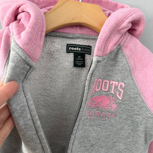 Roots / Pink x light grey zip up hoodie / 3T