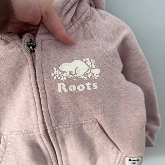 Roots / Pink zip up hoodie / 12-18M