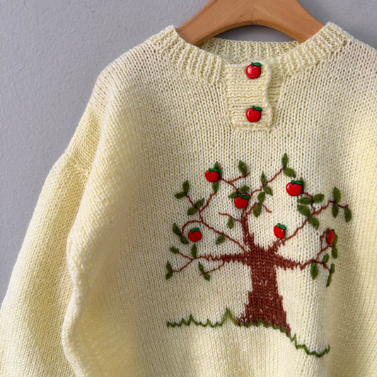 Handmade / Yellow x apple tree knit pullover / 7Y