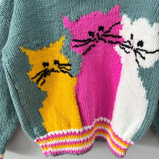 Sold outHandmade / 3 cats knit pullover / 5Y
