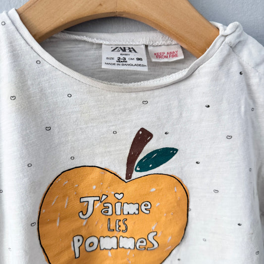 Zara / J'aime les pommes T-shirt / 2-3Y