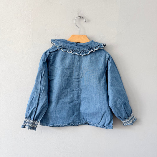 Zara / Chambray shirt with ruffle collar / 5Y