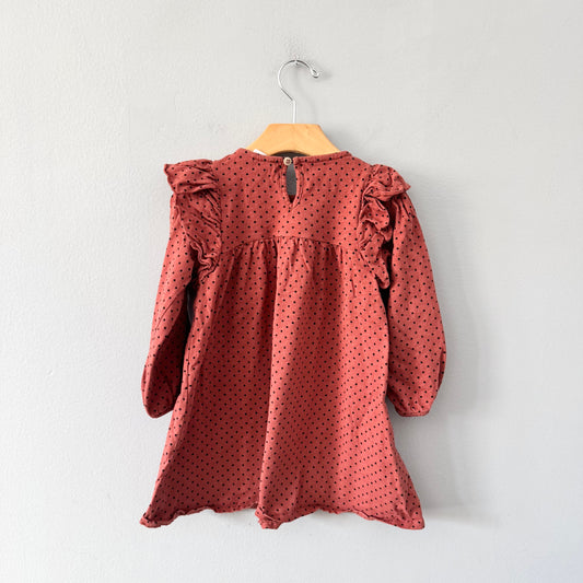 Zara / Brown x dots long sleeve dress / 3-4Y