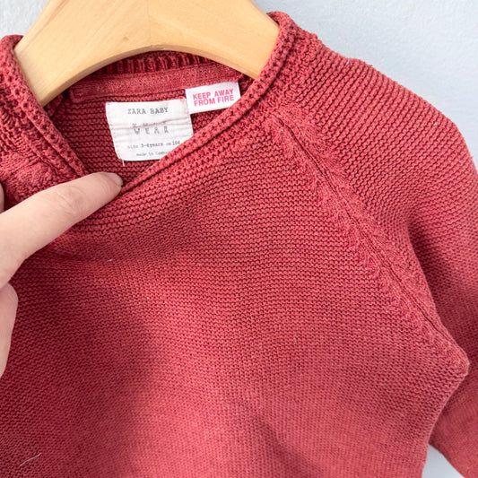 Zara / Red cotton knit pullover / 3-4Y