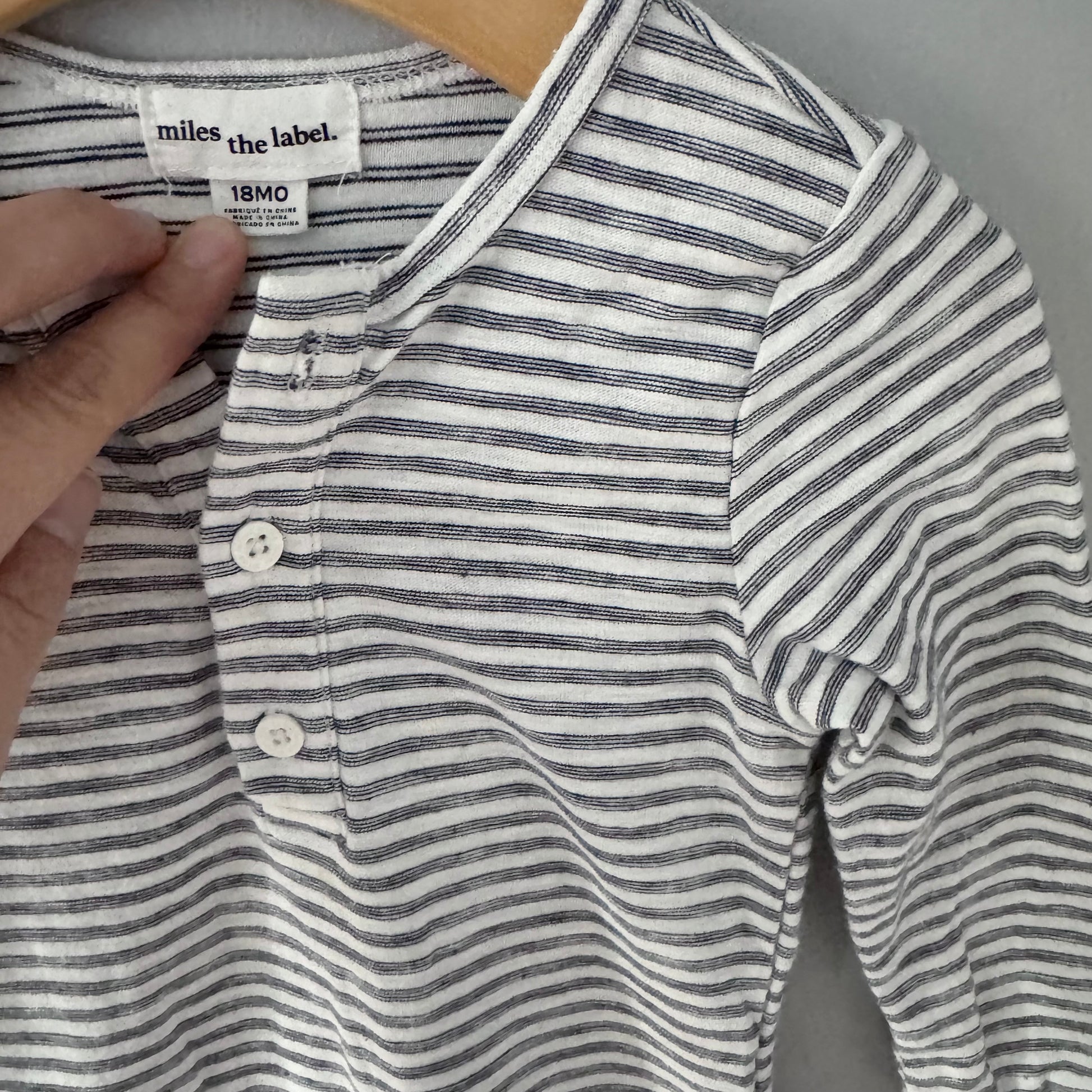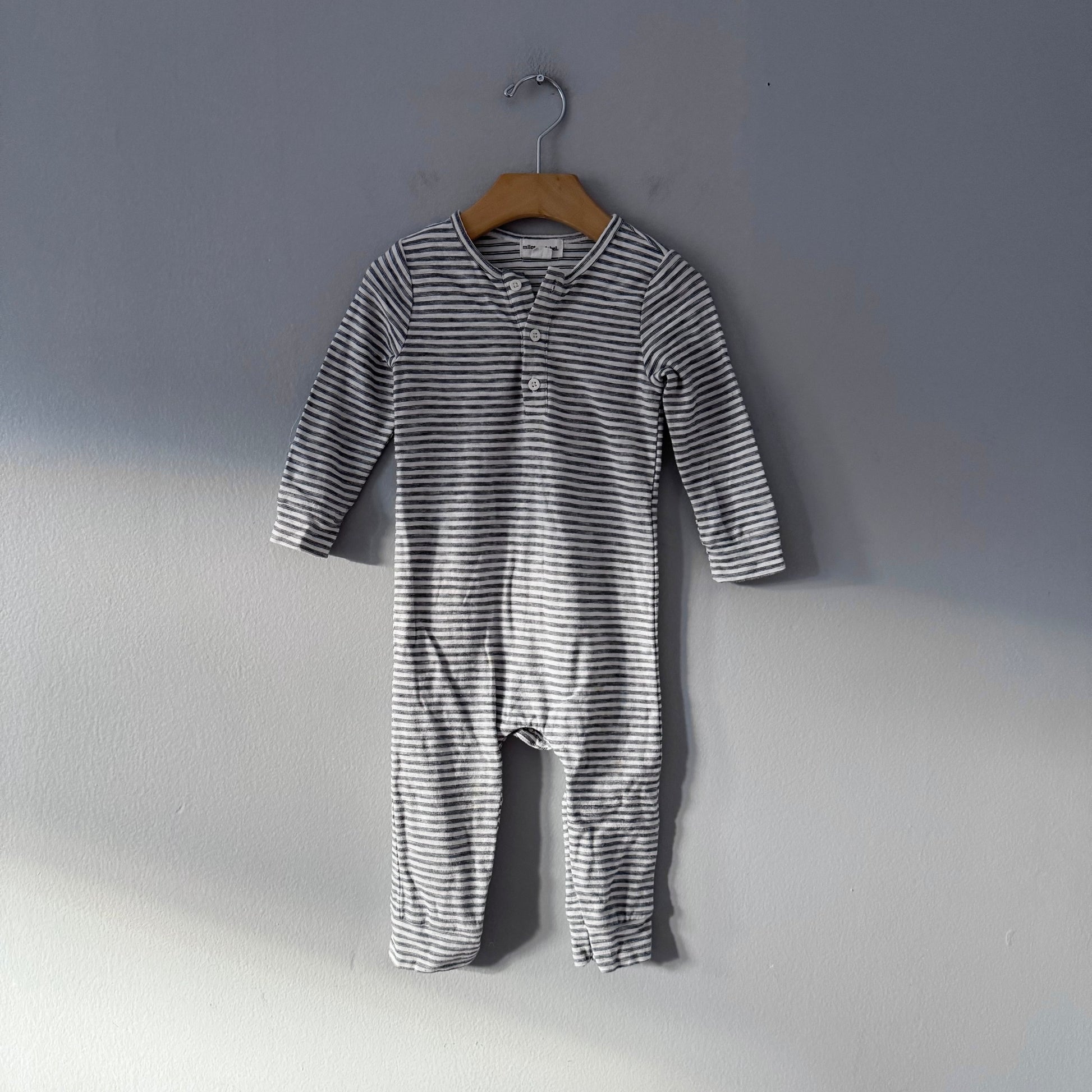 Miles the label / White x black stripe romper / 18M