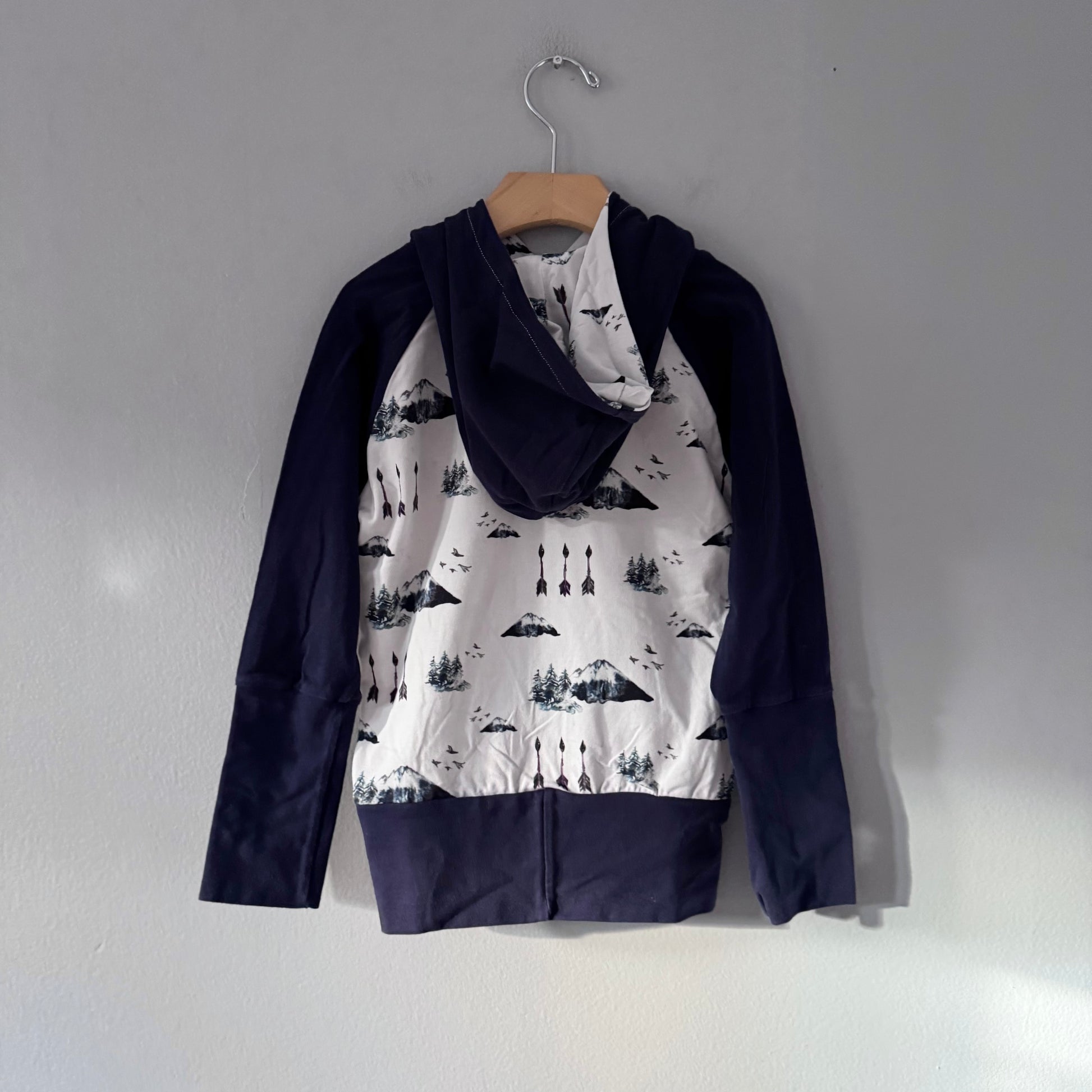 Handmade / White x navy grow with me hoodie / 3-5T