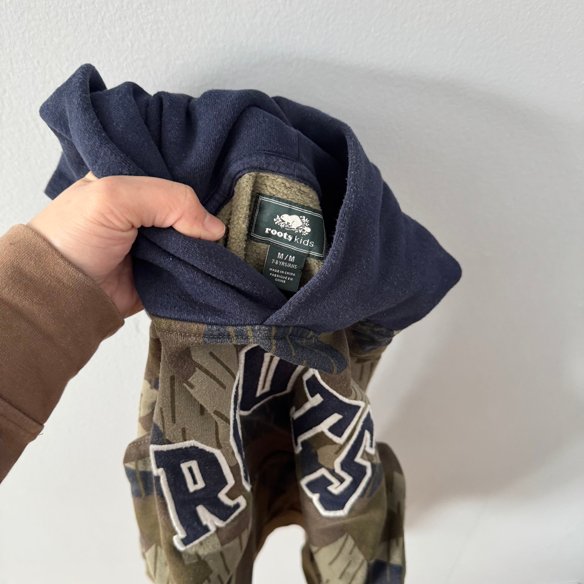 Roots / Brown x navy hoodie / 7-8Y