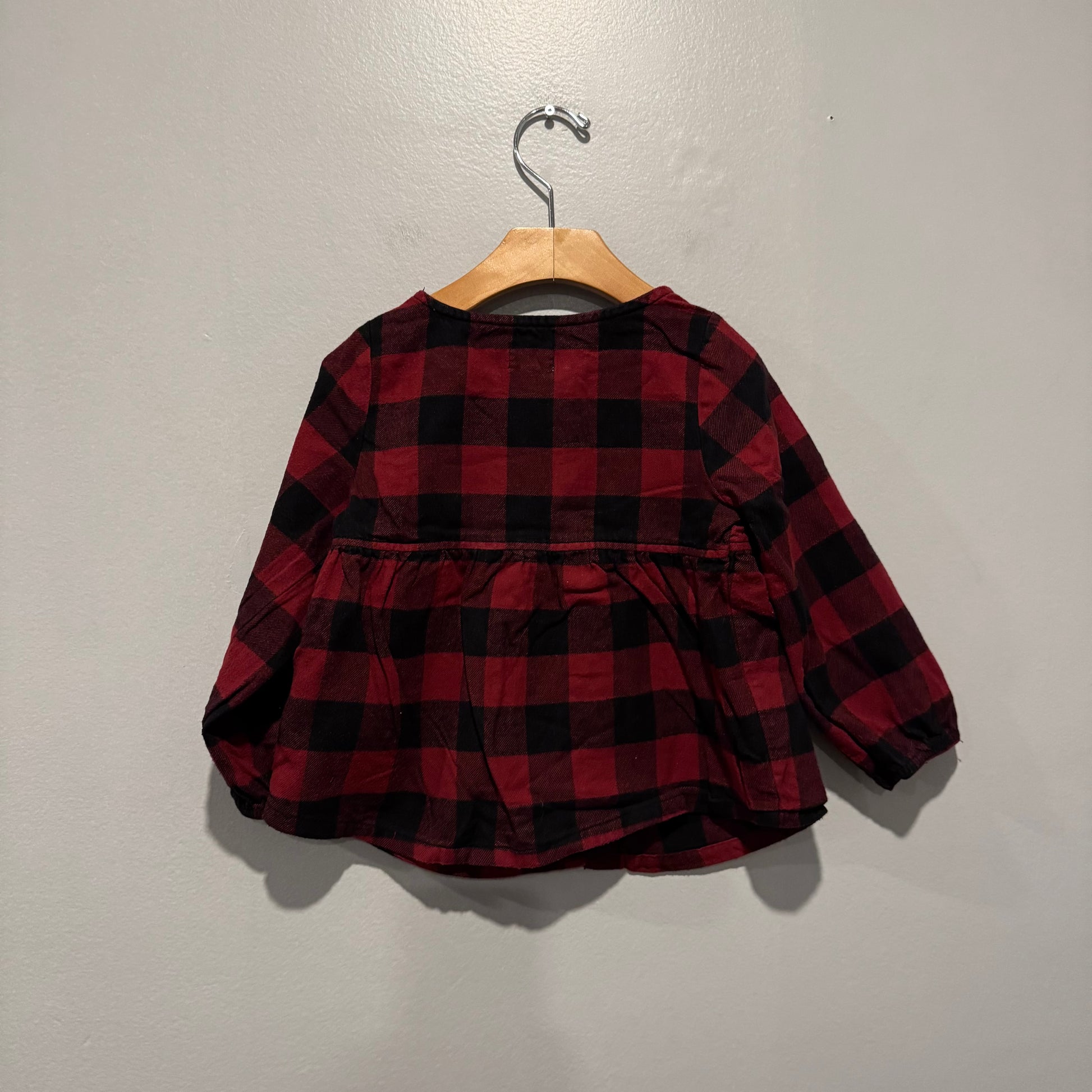 Rise Little Earthling / Red x black plaid tunic / 3-4Y
