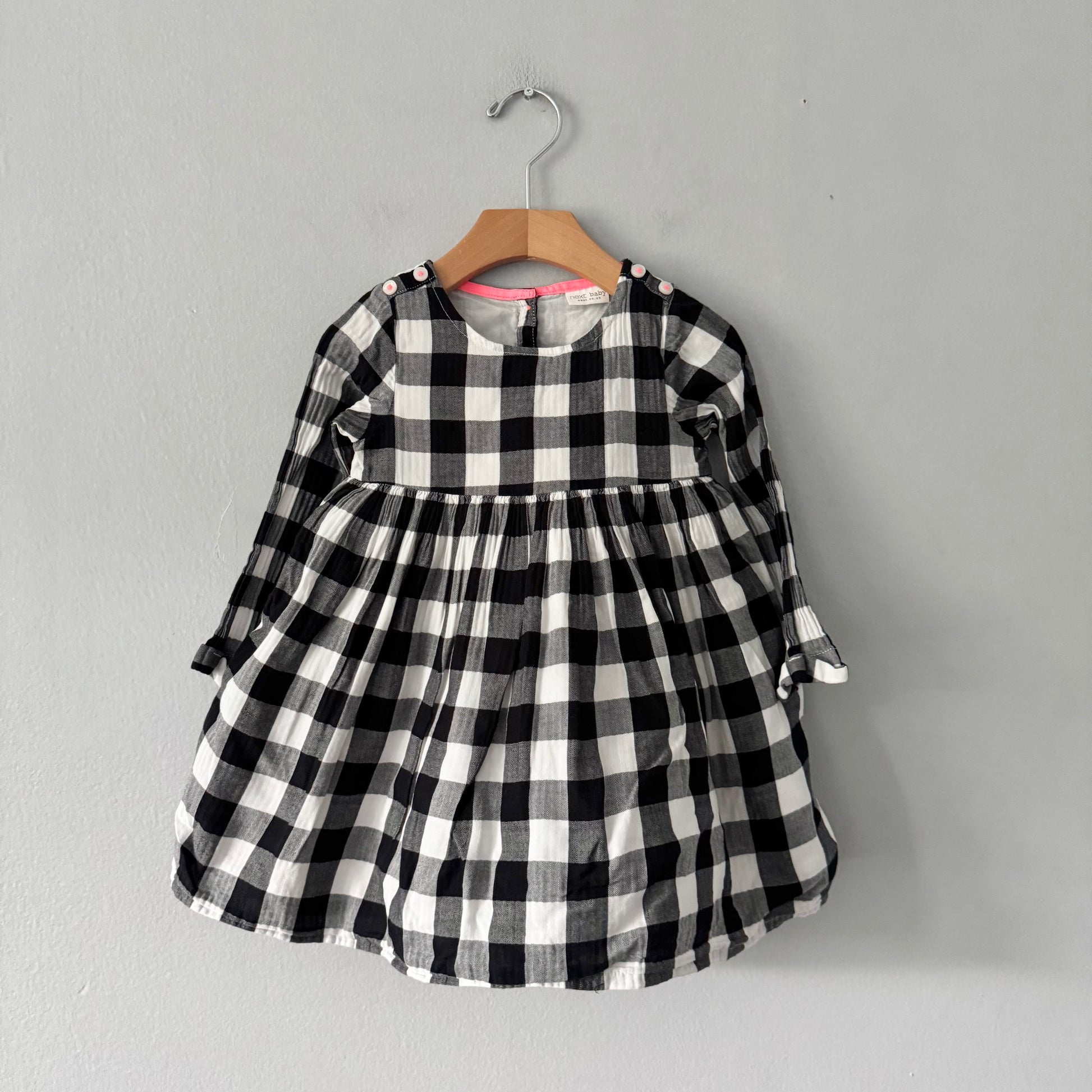 Next / Black white plaid dress / 18-24M