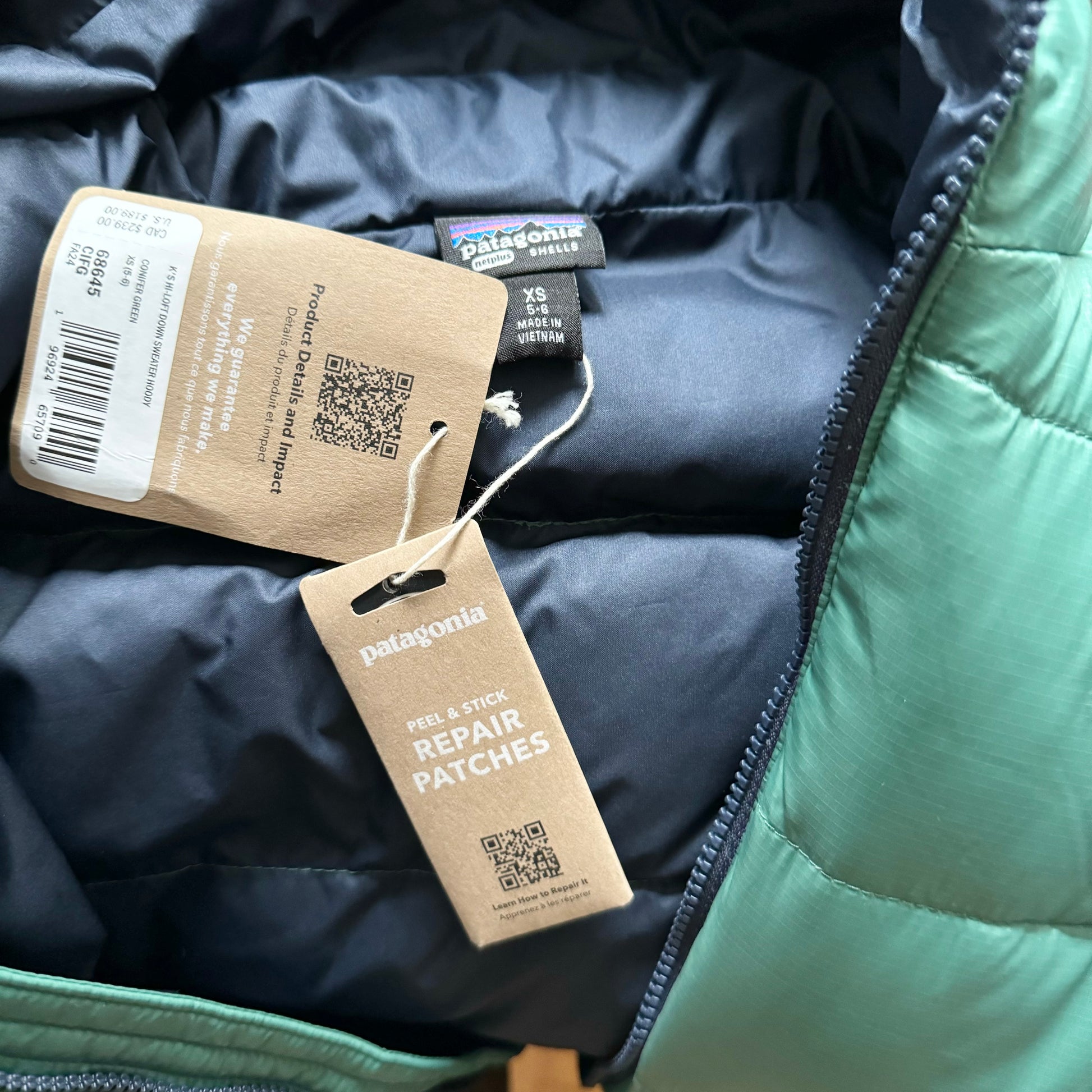 Retail $239 + tax, https://www.patagonia.ca/product/kids-hi-loft-down-sweater-hoody/68645.html?dwvar_68645_color=NENA |