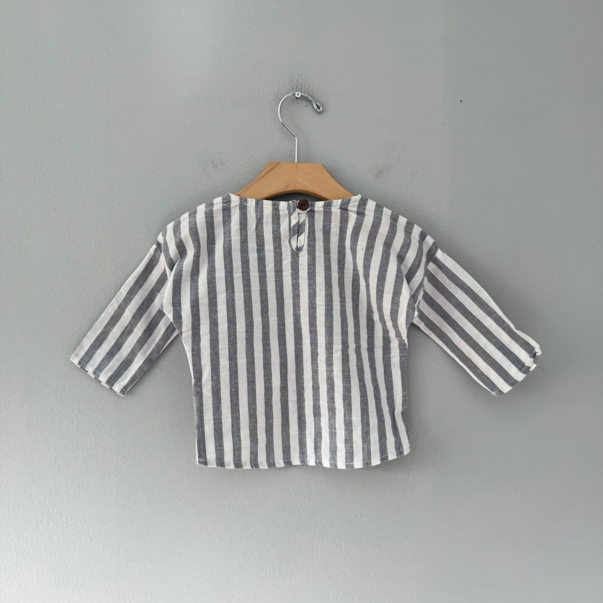 | Info | Fits 12-18M, button at back, cotton & linen |